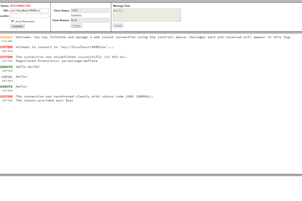 A simple in-browser web socket client UI. This extension is primarily intended for use by web developers looking for an easy way to test web socket endpoints as they develop.