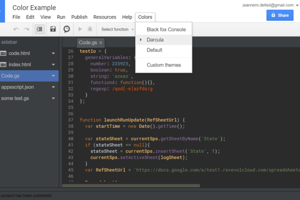 AppsScript Color - Chrome 应用商店, Provides folders display and a dark color theme to the google apps script editor.